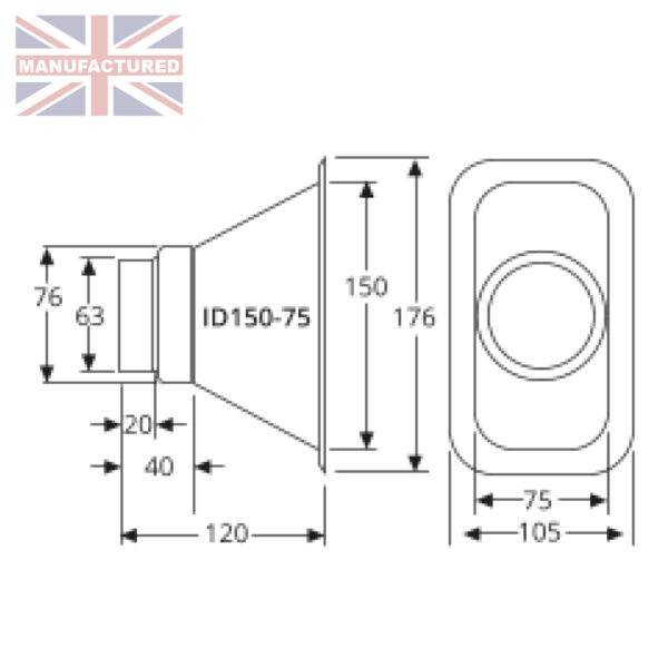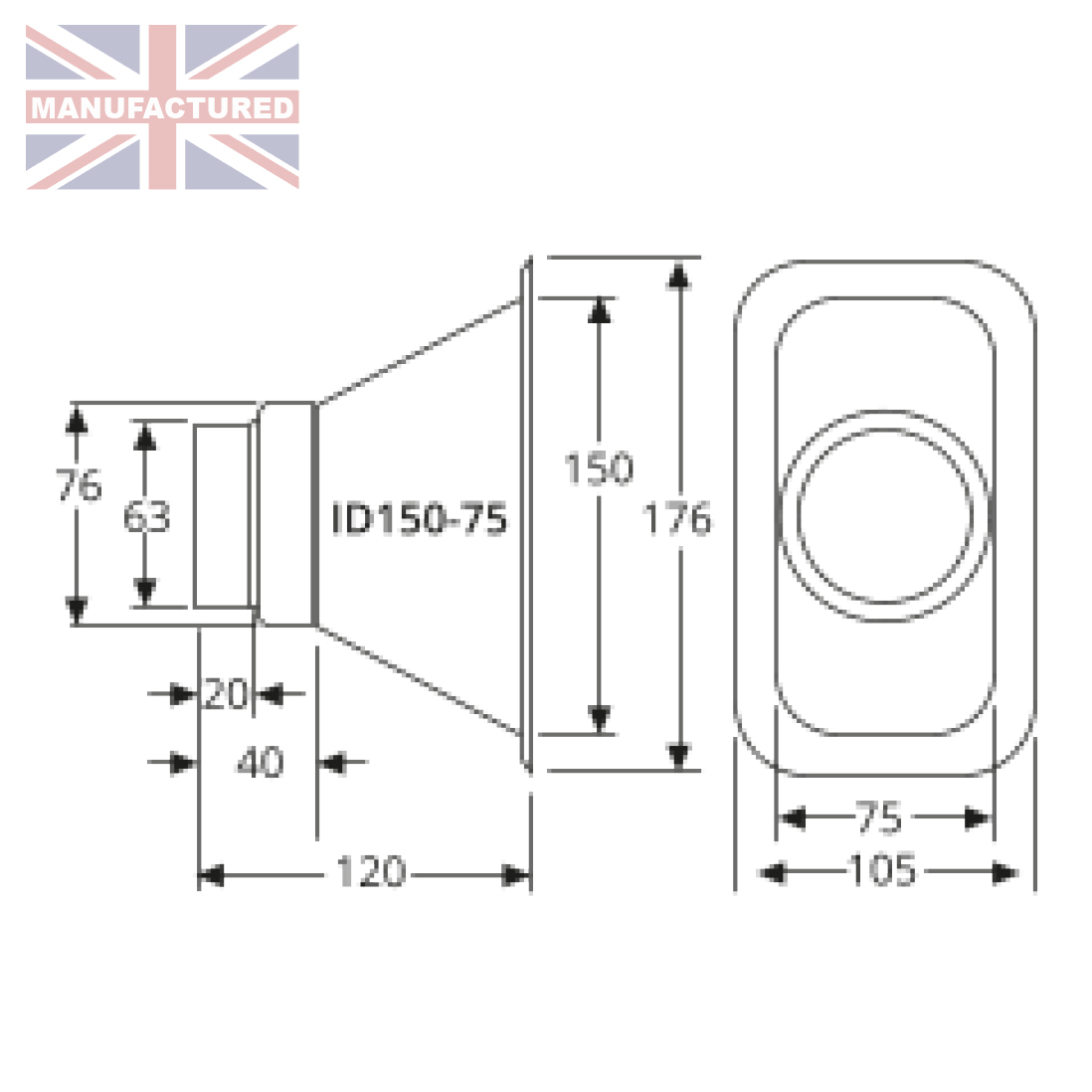 AIR INTAKE DUCT: 150 x 75mm Rectangular Inlet 63/76mm Outlet