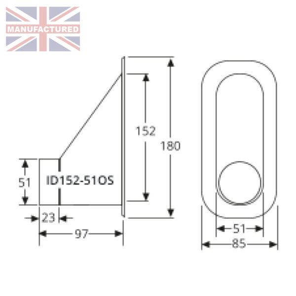 152mm x 51mm Rectanglar Intake Duct with offset outlet. Designed to fit in 152 mm (6″) x 51 mm (2″ ) opening.