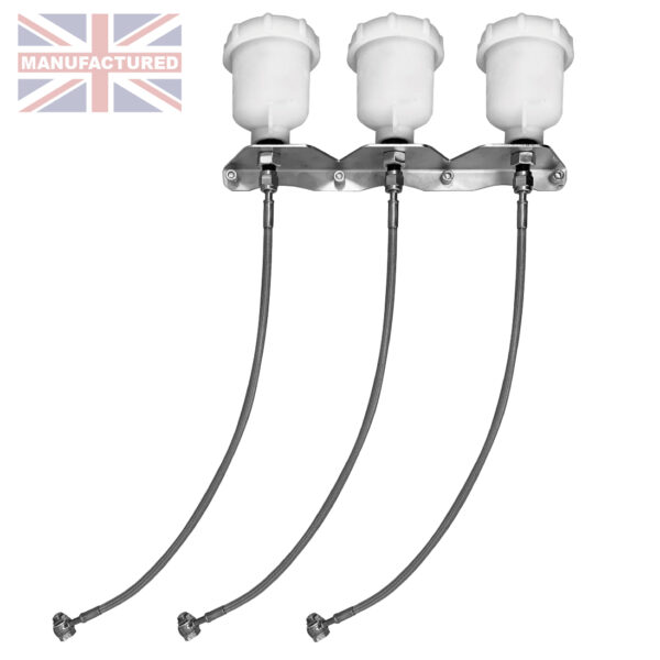 Lightweight stainless steel feed pipes for strength and corrosion resistance. Very useful when using 3 reservoirs.