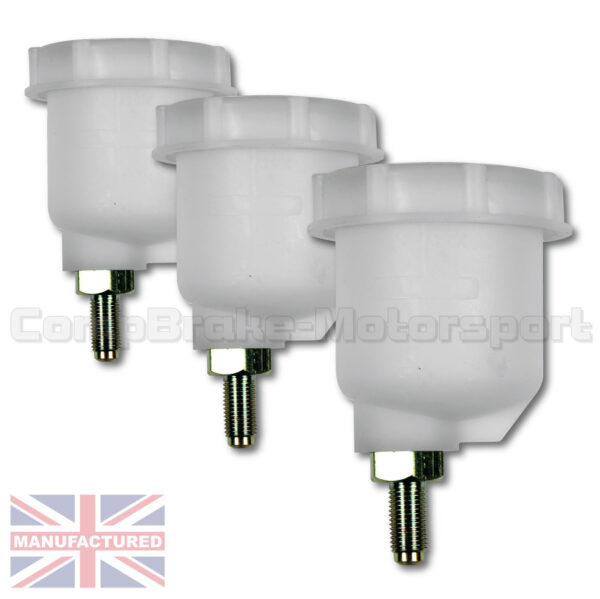 Reservoir’s are 80mm high including cap, 70mm cap diameter 7/16UNF thread reservoir, braided feed pipes connect direct to master cylinders to Master Cylinder.
