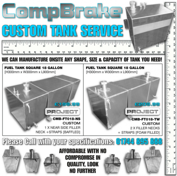 Please get in touch for your Bespoke Tank Requirements as we manufacture any shape or size and fittings all available at Compbrake and produced in house .