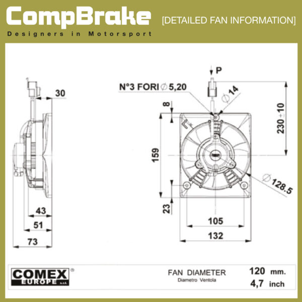 Compbrake are UK distributors for COMEX Europe who specialise in the manufacture of 12v and 24v Electronic Cooling Fans as original equipment and for the aftermarket making them the perfect upgrade to your vehicle. Our range of electric radiator cooling fans combines quality, durability, performance and price to offer unbeatable value. The fans are lightweight and high output, they also benefit from sealed bearings, balanced blades and low profile. They are also waterproof to level IP68, meaning they are able to resist the most extreme weather and working conditions (e.g. dust, mud, rain, snow, ice) at which the vehicles work during their use. They are rated for continuous use and are available in a range of sizes for mounting either in front or behind the radiator (suction or blowing). All housings have four integral 6.5mm mounting holes with other mounting options available.