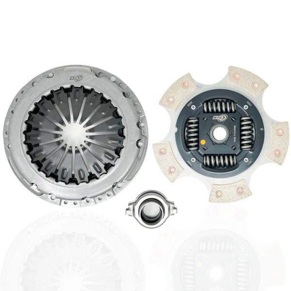 This material also reduces the effects of fade. Fade is the decline in the clutch system’s ability to transmit torque as operating temperatures increases. These features in combination with the previously mentioned micro-structure of spheroidal casting and ER2 technology allows the clutch kit to dissipate heat far more effectively, allowing the clutch to run cooler for longer. COMPBRAKE kit has been designed with a higher clamp load enabling the clutch system to transmit 60% more torque over the standard clutch kit and is suitable for every day driving, fast road and track/circuit racing whilst maintaining user-friendly driving experience. COMPBRAKE Twin Friction kit has been designed with a higher clamp load allowing.