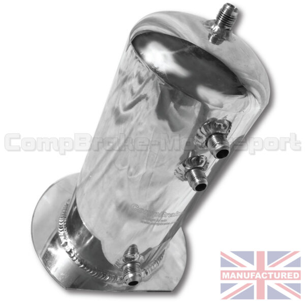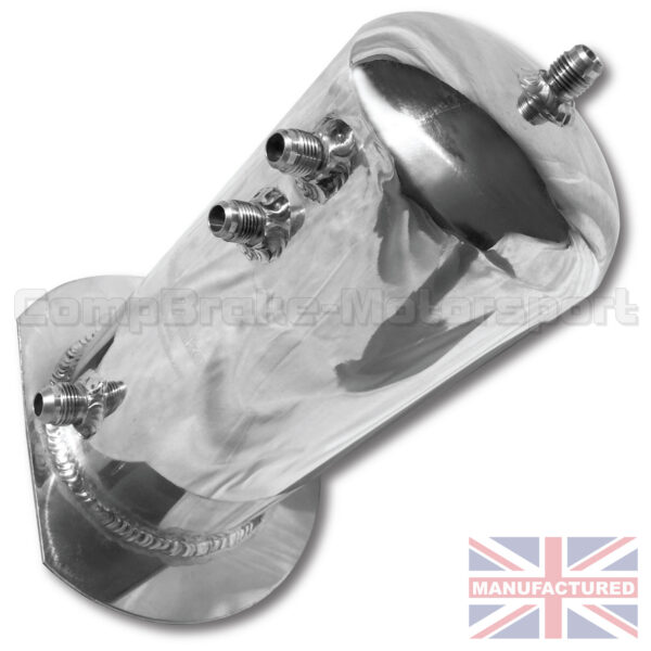 DOME TWIN FUEL SWIRL POT 2.5 LTR [BASE MOUNT] SURGE TANK – VERTICAL ROUND ALLOY 135MM DIAMETER X 260MM [JIC FITTINGS]