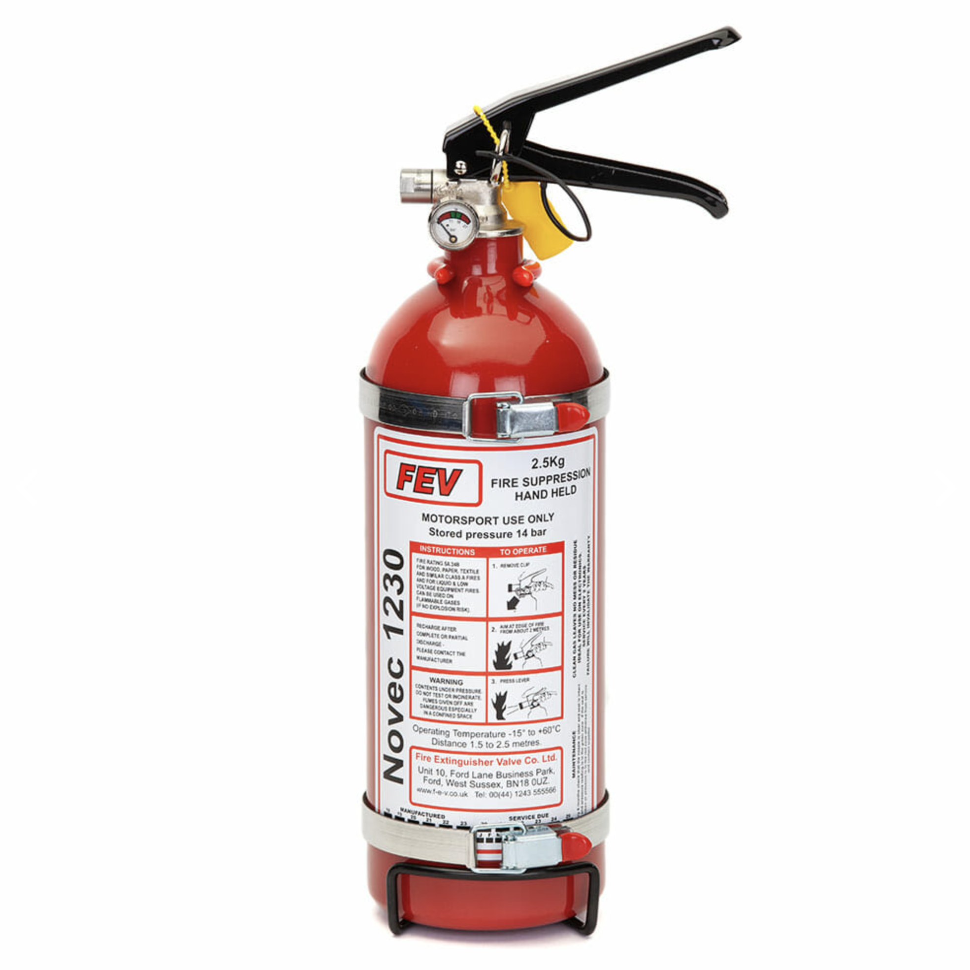 FIA/MSUK 2 kg 3M Novec 1230 gas hand held fire extinguisher fitted with stainless steel nozzle. This hand held is FIA approved for international Rally but can also be used for track day and personal use.