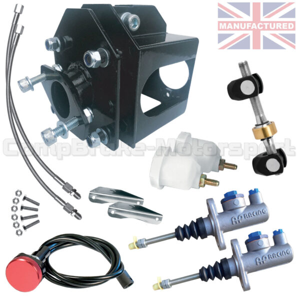 LOTUS S1 KIT INCLUDES – AP MASTER CYLINDERS [0.625 + 0.7], BALANCE BAR, DASH ADJUSTER, 2 X RESERVOIR BOTTLES, 2 REMOTE BRAIDED LINES, MOUNTING BRACKET, LINK ARM
