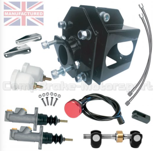 LOTUS S1 KIT INCLUDES – MASTER CYLINDERS [0.625 + 0.7], BALANCE BAR, DASH ADJUSTER, 2 X RESERVOIR BOTTLES, 2 REMOTE BRAIDED LINES, MOUNTING BRACKET, LINK ARM