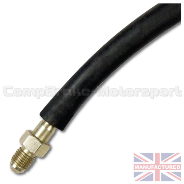 Manufactured using special brake fluid resistant rubber. This flexible 50mm hose is supplied complete with plated 7/16” UNF fittings for direct connection to master cylinders