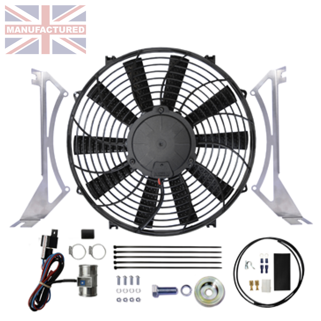 RETRO-FIT [CLASSIC CAR] COOLING KIT [Triumph TR5 & 6] FAN-CONTROLLER-BRACKETS [NEGATIVE EARTH] 14″ High power Comex blowing fan