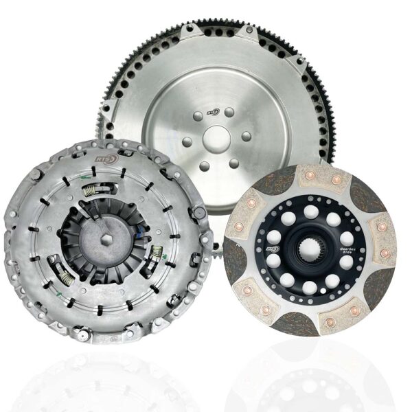 Each kit is custom-built to your vehicle’s specifications and features a dual friction disc—with ceramic material on one side and HD1 organic racing material on the other. This setup offers enhanced durability and performance while maintaining smoother engagement compared to paddle or full-ceramic setups.