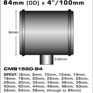 The main pipe is 100mm long (4”) and has a wall thickness of 5mm. The Tee piece is CNC machined and TIG welded in place. Then the whole assembly is polished to a mirror finish. The pipes feature bevelled ends for secure hose clamping. Various diameters from 16mm up to 100mm