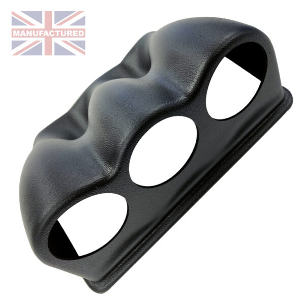 Designed and made in the UK these gauge mounts can be profiled by the customer to fit almost any car windscreen pillar or roll bar. All supplied pre-drilled for 52mm gauges. Manufactured in ABS with a Black Leather Grain finish.