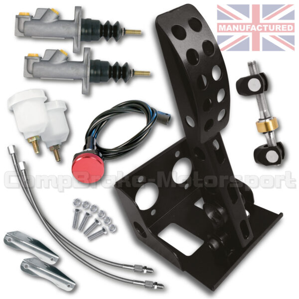 BOX KIT B INCLUDES – SPORTLINE BOX PLUS – [2 X MASTER CYLINDERS, FIXINGS, BALANCE BAR, 2 X RESERVOIRS, 2 X MOUNTING BRACKETS, REMOTE CABLE ADJUSTER & 2 X BRAKE LINES]
