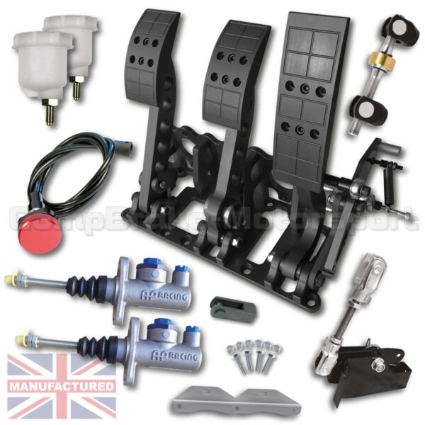 UNIVERSAL FLOOR MOUNTED PEDAL BOX KIT [PREMIER-PRO LIGHT] REMOTE AP CYLINDERS [CABLE] 3-PEDAL [KIT A] BLACK