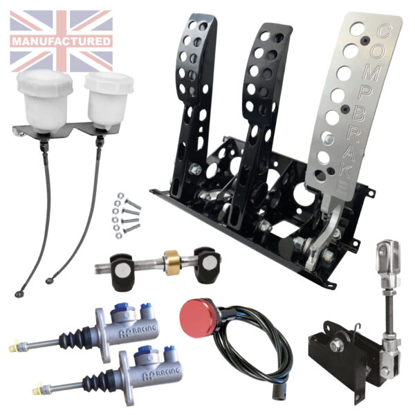 BOX KIT B INCLUDES – SPORTLINE BOX PLUS – [2 X AP MASTER CYLINDERS, CLEVIS, FIXINGS, BALANCE BAR, 2 X RESERVOIRS, 2 X MOUNTING BRACKETS, CABLE ADAPTER & REMOTE CABLE ADJUSTER, PLUS 2 X BRAKE LINES]