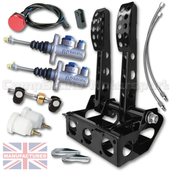 BOX KIT B INCLUDES – SPORTLINE BOX PLUS – [2 X AP MASTER CYLINDERS, CLEVIS, FIXINGS, BALANCE BAR, 2 X RESERVOIRS, 2 X MOUNTING BRACKETS, CABLE ADAPTER & REMOTE CABLE ADJUSTER, PLUS 2 X BRAKE LINES]